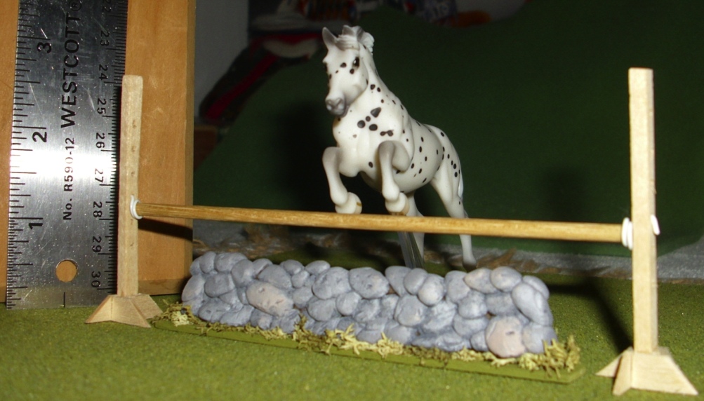 For those who are not familar with Breyer Stablemates, I put a ruler next to the jump for scale. Yes, those jump standards are right around 2.5" high.